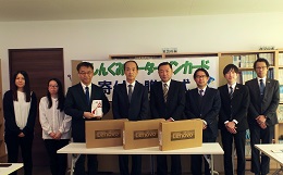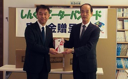 贈呈式は、3月25日(水)に行われ、当組合の泉理事長が「興正学園」を訪れて、鏑木施設長に目録を手渡しました。